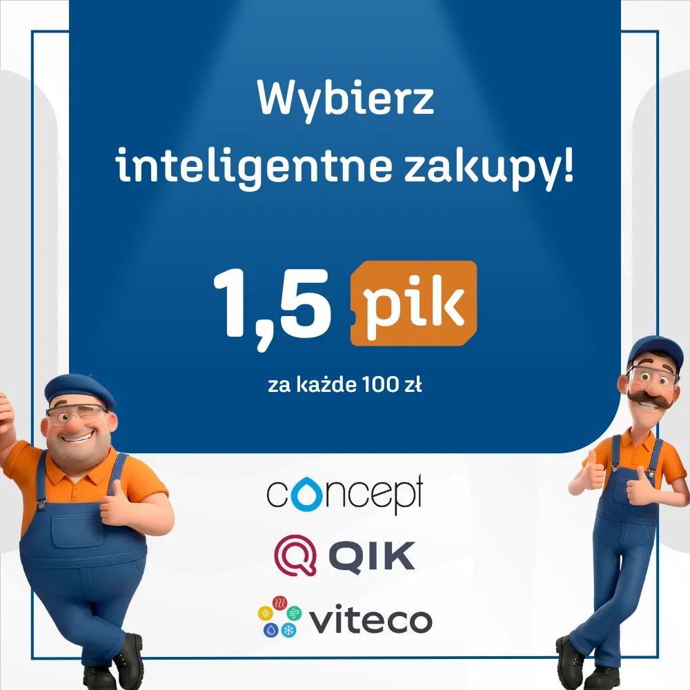 Najwięcej punktów otrzymasz przy zakupach produktów Marek Własnych Instal-Konsorcjum: Concept, QIK i Viteco, gdzie obowiązuje przelicznik 1,5 PIK za każde 100 zł netto. Pozostałe produkty naliczane są według listy akcji dostępnej poniżej.